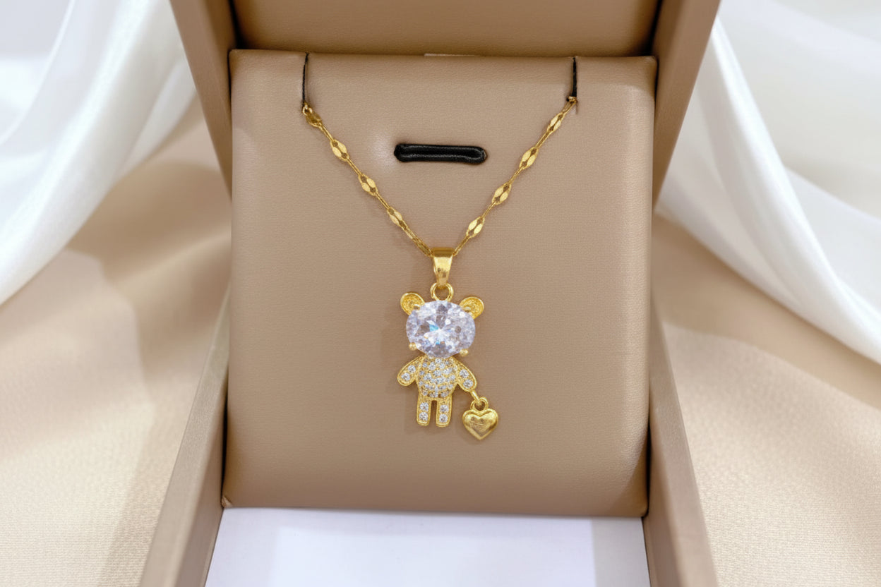 This charming bear clutches a delicate heart, making it an ideal decorative piece or thoughtful keepsake gift.